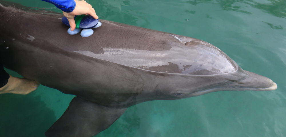 “The development of such conservation tools is dependent on our ability to gather physiological, cognitive, and bio-mechanical data from healthy animals in a controlled setting,” says Allen. “Dolphin Quest provides an ideal environment for this work since it is an accredited zoological institution with healthy animals that voluntarily participate in the study. These factors allow our team to safely gather baseline data that would be impossible to collect in the wild.”